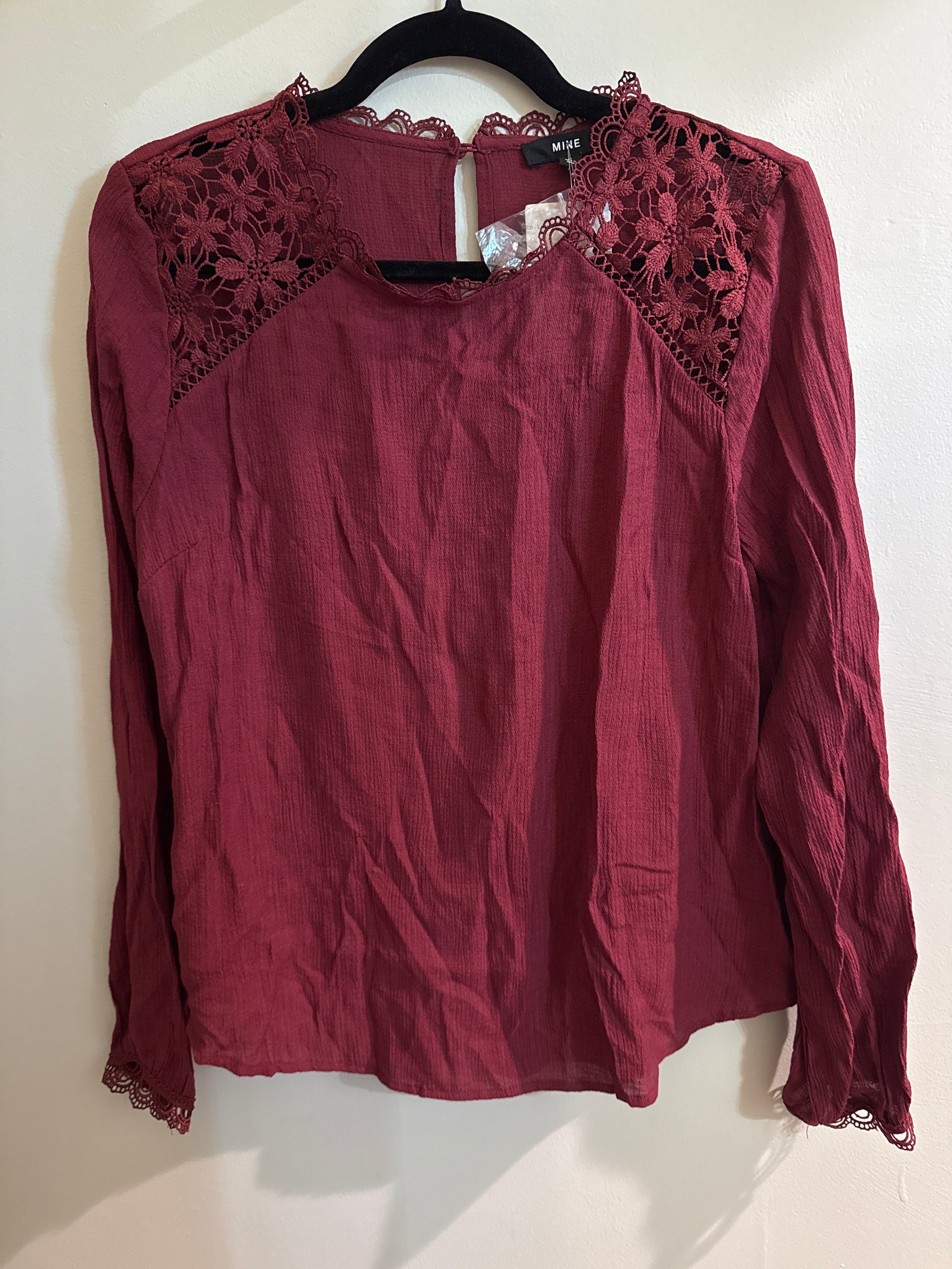 L NWT Mine burgundy lace blouse