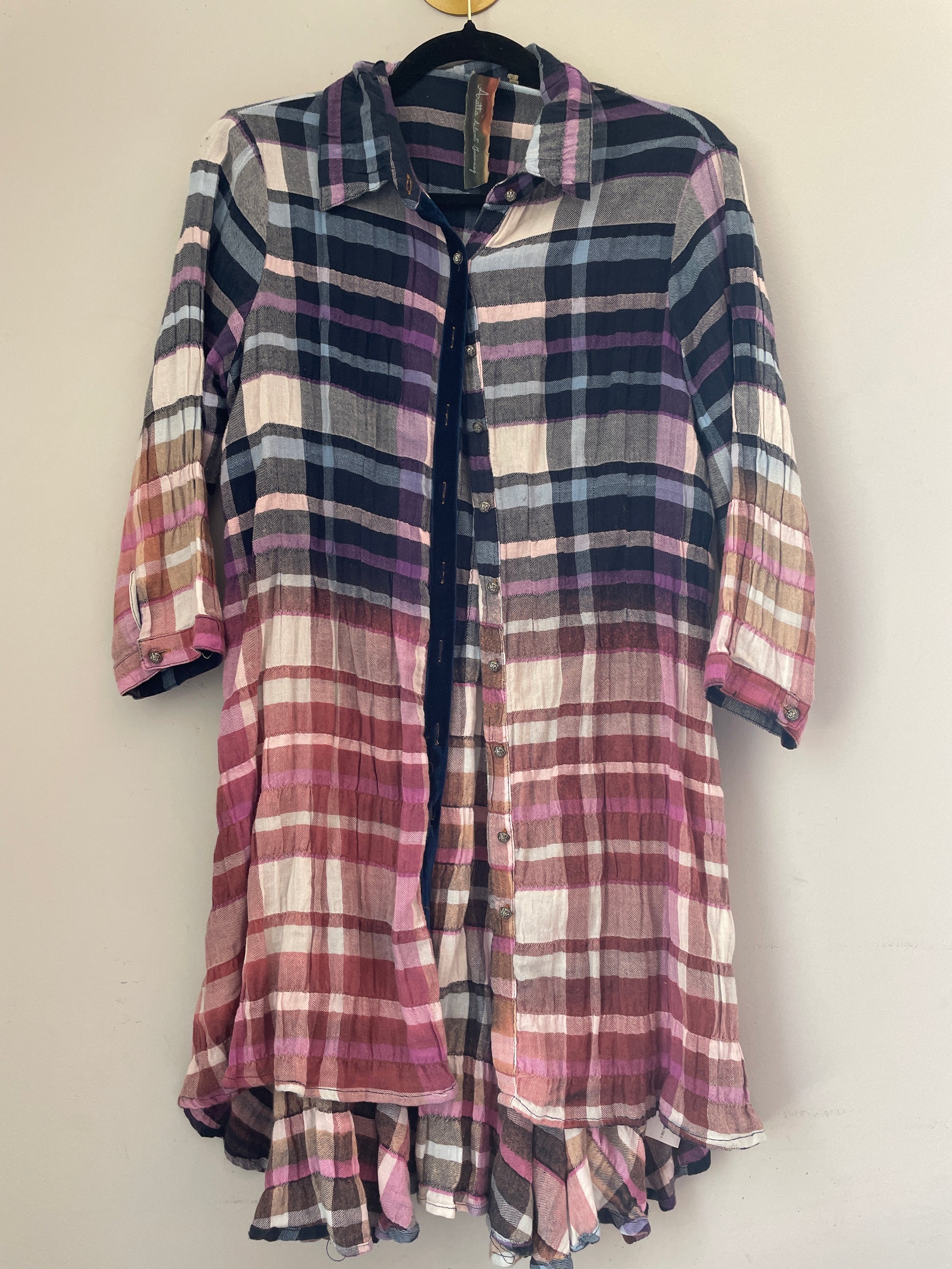 S Aratta Silent Journey Plaid Ombre Button Up Shirt Dress