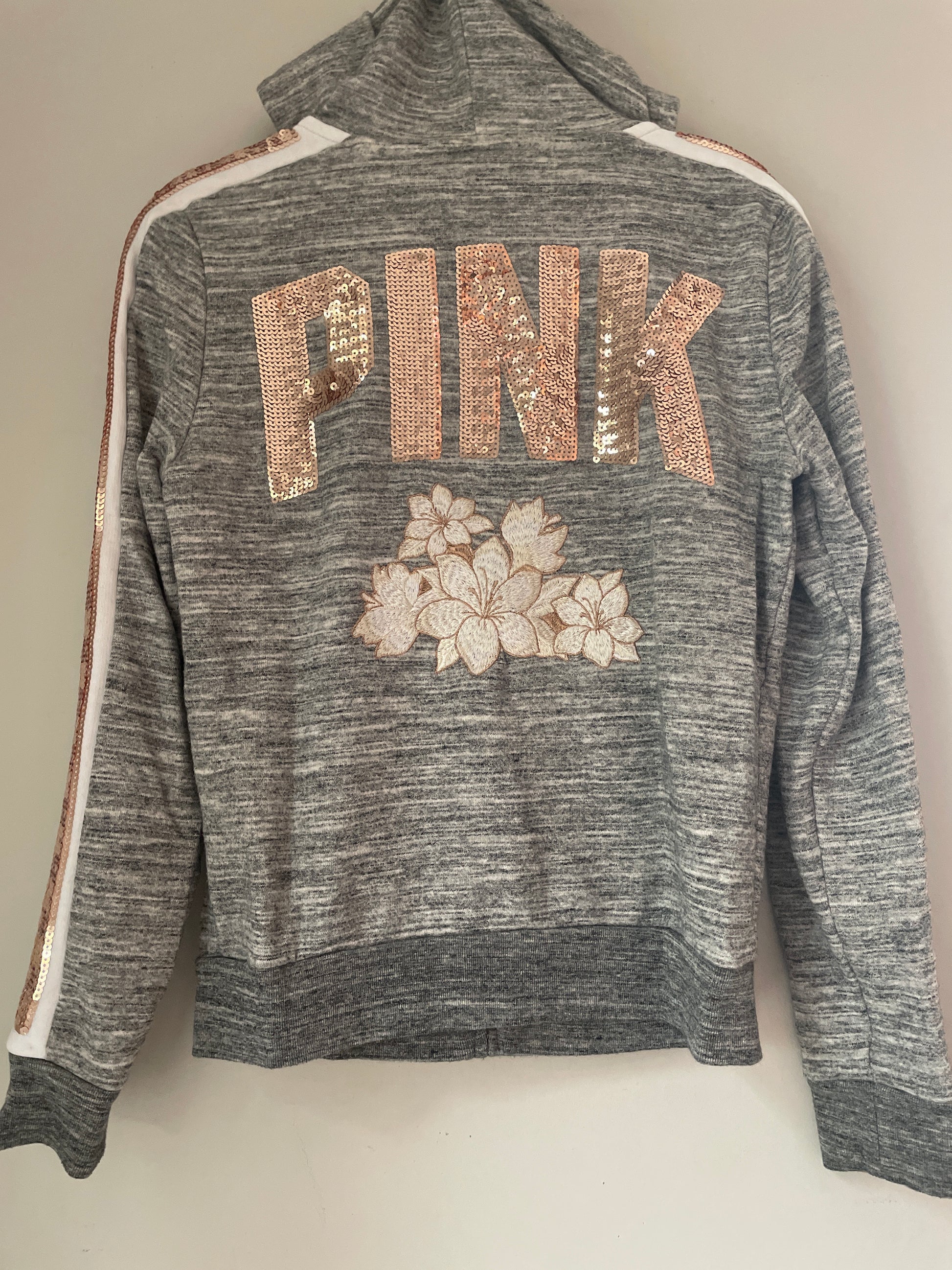S Victorias Secret PINK Bling Floral Zip Up Hoodie
